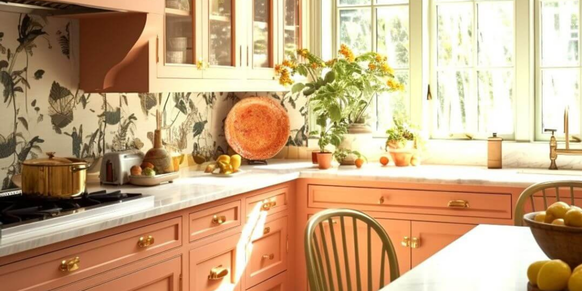 A statement color, peach is a stylish choice that adds a touch of sophistication and contemporary elegance. It suits different home décor styles, such as eclectic bohemian, which is a carefree design style that mixes colors and patterns, and neo-traditional, which is a contemporary take on traditional design. Introducing peach into your home can be tricky, but we’ve created a guide to help you freshen up your space in a variety of ways.