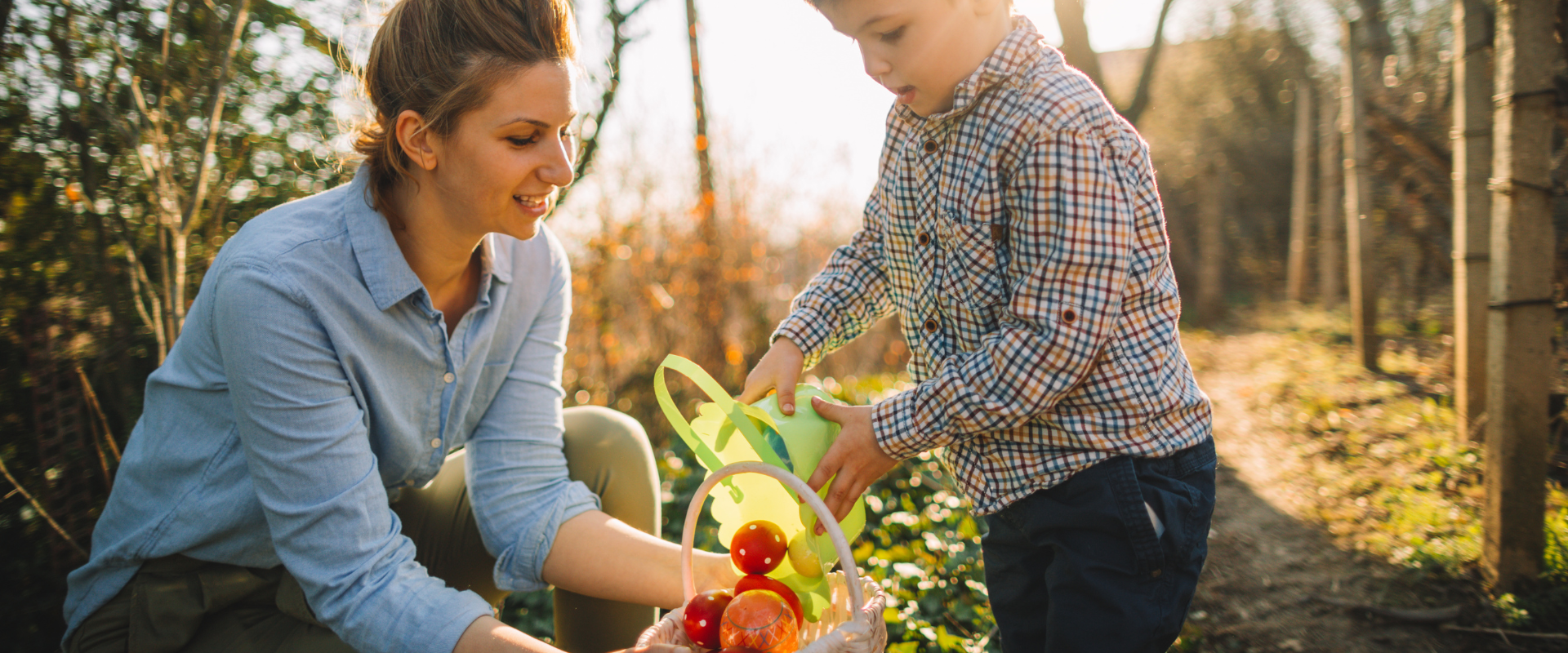Punch balloons or temporary tattoos fit perfectly into a regular-sized plastic Easter egg. If you have larger eggs available, a small container of putty or a little racecar is always exciting!