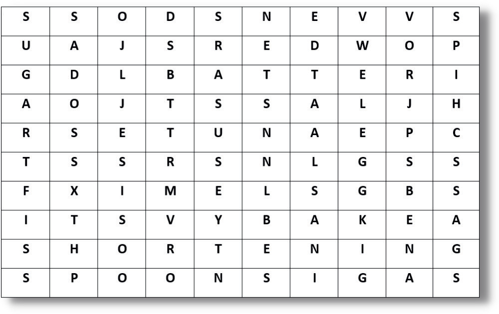 Find all the words in the puzzle below, follow the directions and bake a yummy batch of peanut butter cookies (two ways). Circle the words below! They will be right to left, up and down or diagonal. See the next page for the recipes!