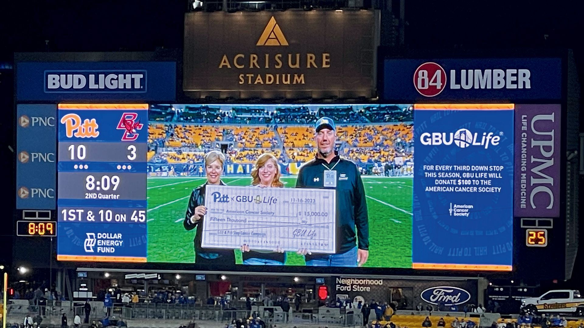 Once again, GBU teamed up with the University of Pittsburgh Pitt Panthers to help stop cancer. GBU donated $100 to the American Cancer Society® for every third and fourth down stop made by Pitt during the season.