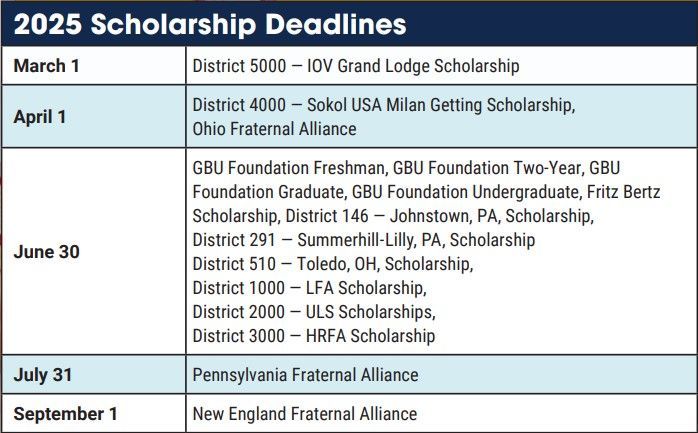 - District 4000 — Sokol USA Milan Getting Scholarship (Visit sokolusa.org/scholarship to apply.)